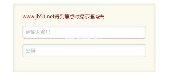 版权声明:jQuery实现输入输入框获得焦点和失去焦点时提示消失显示功能示例是由宝哥软件园云端程序自动收集整理而来。如果本文侵犯了你的权益,请联系本站底部QQ或者邮箱删除。