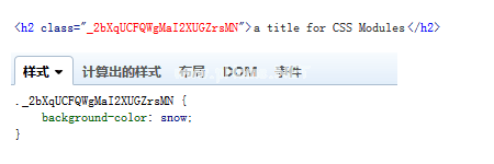 { test: /\。css$/,loader: '样式!css?modules localident name=[name]_ _[local]_ _ _[has h : base 6433605]' }也应用于前面的示例,这将成为结果: