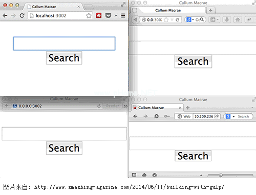 BrowserSync不仅仅是一个自动刷新工具,它还有很多其他功能。默认情况下,BrowserSync在多个浏览器中同步滚动条位置、表单行为和单击事件。例如,表单的行为如下所示: