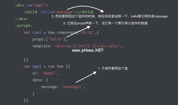 div id='app1 '!- hello指的是父元素的hello,也可以指消息、问候、世界等。-child : hello=' hello '/child/div script varcom 1=vue.com(' child ',{//prop中声明的变量可以引用父元素的数据prop :[' hello ']。//在这里,渲染道具中声明的hello template 3360“divp { { hello } }/p/div”。})var app 1=new Vue({ El : ' # app 1 ',data : { greet : { hello : ' hello ',world: 'world ',},message: 'message1 ',})/script 2。camel case vs. kebab-case:在js中用驼峰命名,在html中用短横线分隔的名称替换