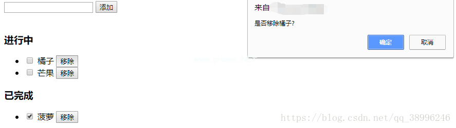 Div id=' app '输入类型=' text ' v-model=' msg ' @ Key down=' kaddfun($ event)'/button @ click=' addfun()' add/button br/br/h3in progress/h3ul liv-for=' item . checked '输入类型=' checkbox ' v-model=' item . checked ' @ change=' save list()'/{ { item . title } } button @ click=' movefun(Key)' remove/button/Li/ul H3完成/H3 ul Li-v选中“输入类型=”复选框“v-model=”项。选中了“/{{item。title } } button @ click=' move fun(key)' remove/button/Li/ul/div script src=' http :3359 cdn . jsdeliver . net/NPM/Vue/dist/Vue . js '/script script type=' text/JavaScript ' var app=new Vue({ El : ' # app ',data:{ msg: ' ',list:[] },methods:{ addFun())//存储数据localstorage.setitem ('list ',JSON.stringfy (this.list))},kadd fun(e){ if(e . key code==13){ this . addfun();} },moveFun(键){确认('是否要删除'此. list[键]。标题?);this.list.splice(键,1);localStorage.setItem('list '、JSON.stringify(this.list)) }、save list(){ local storage . setitem(' list '、JSON.stringify(this.list)) }、//刷新生命周期函数vue页面时触发的方法mounted(){//将JSON字符串转换为JSON对象varlist=JSON . parse(local storage . getitem(' list ')))//判断列表中是否存在(list){//将得到的列表保存在刷新后的列表中。}} }) /script封装了localstorage本地存储方法的操作