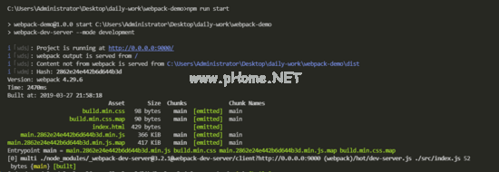 脚本: { ' test ' : ' echo '错误:未指定测试退出1 ','开始' : '网络包-开发-服务器-模式开发,' build ' : ' web pack模式生产' }执行新公共管理运行开始,执行结果如下: