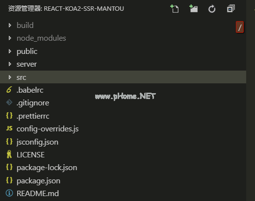 这里有个例子带你入坑!使用create-react-app创建一个react项目。因为我们想修改webpack,这里我们使用react-app-retired来启动项目。根目录创建一个服务器目录来存储服务器代码,这里我们使用koa2。目录结构如下:
