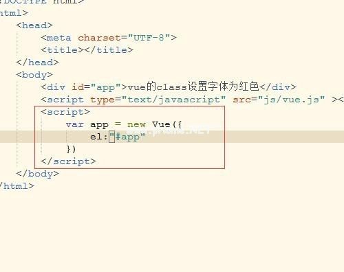 2.在html代码页上创建一个div,将id添加为app,并添加一段文本