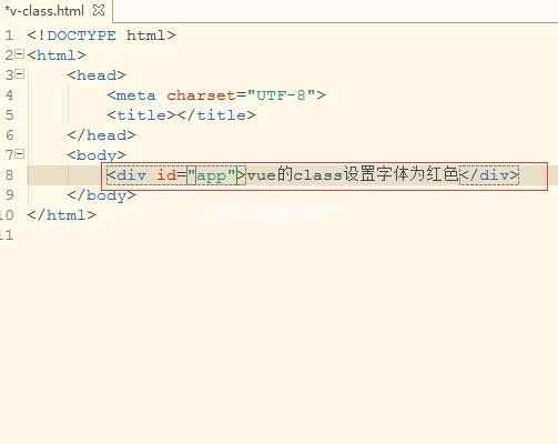 6.用:类添加红色类样式。在div标记中添加:class='{red:true} '。