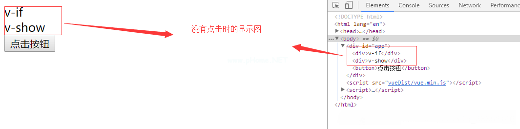 !DOCTYPE html html lang=' en ' head meta charset=' UTF-8 ' title title/title/head body Div id=' app ' Div v-if=' ISif ' v-if/Div v-show=' ifShow ' v-show/Div按钮@click='toggleShow()'点击按钮/按钮/div/body脚本src=' http : vuedist/vue . min . js '/script script new vue({ El : ' # app ',data:)假:真;this.isIf=this.isIf?假:真;}} })/script/html在单击之前先编辑图片