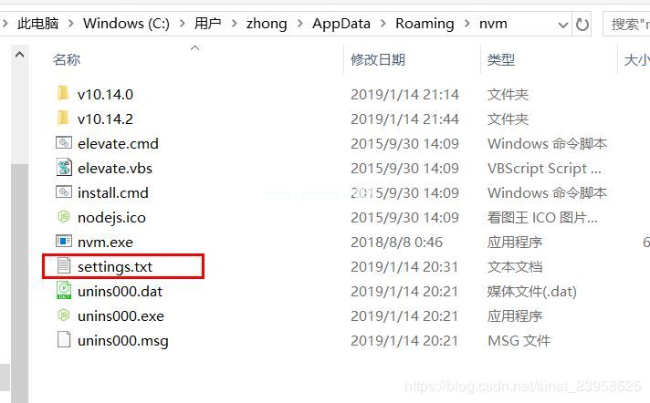 打开nvm的安装路径。默认安装路径是c: \用户\钟\ appdata \漫游\ nvm