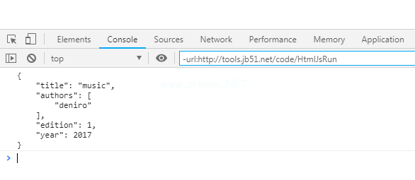 脚本类型=' text/JavaScript ' var book={ title : ' music ',author :[' deniro '],edition: 1,year : 2017 };var jsonTextWithIndent=JSON . stringify(book,null,'-');//传入缩进字符console . log(jsonTextWithIndent);/script使用在线HTML/CSS/JavaScript代码运行工具:http://tools.jb51.net/code/HtmlJsRun对上述代码进行了测试,运行结果如下: