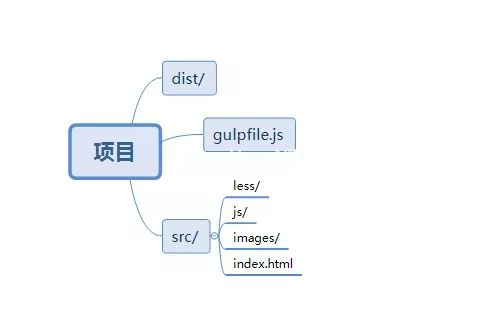 src目录代表项目的源代码,可以看做less、js、html等。而dist目录存储的是编译后生成的代码,相当于生产环境。最后一个也是最重要的一个是gulpfile.js,用于设置gulp相关的配置,类似于webpack中的webpack.config.js。