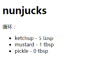 router.get('view ',async (ctx)={ var food={ '番茄酱' : '5汤匙','芥末' : '1汤匙','泡菜' : '0汤匙' };wait ctx.render('index ',{title:'nunjucks ',food });});4.模板语法