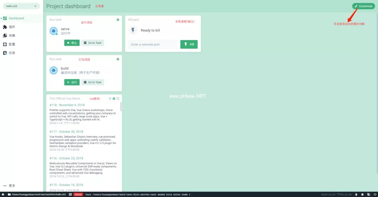 这个仪表盘主要是为了方便我们操作而设置的。您可以单击右上角的按钮来添加/移动这些功能选项。2.vue-cli3.x插件: