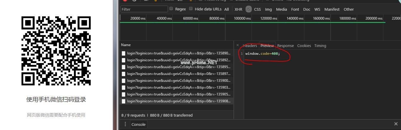 408 扫码超时如果手机没有扫码或没有授权登录,服务器会阻塞约25秒,然后返回状态码408 - 前端继续轮询