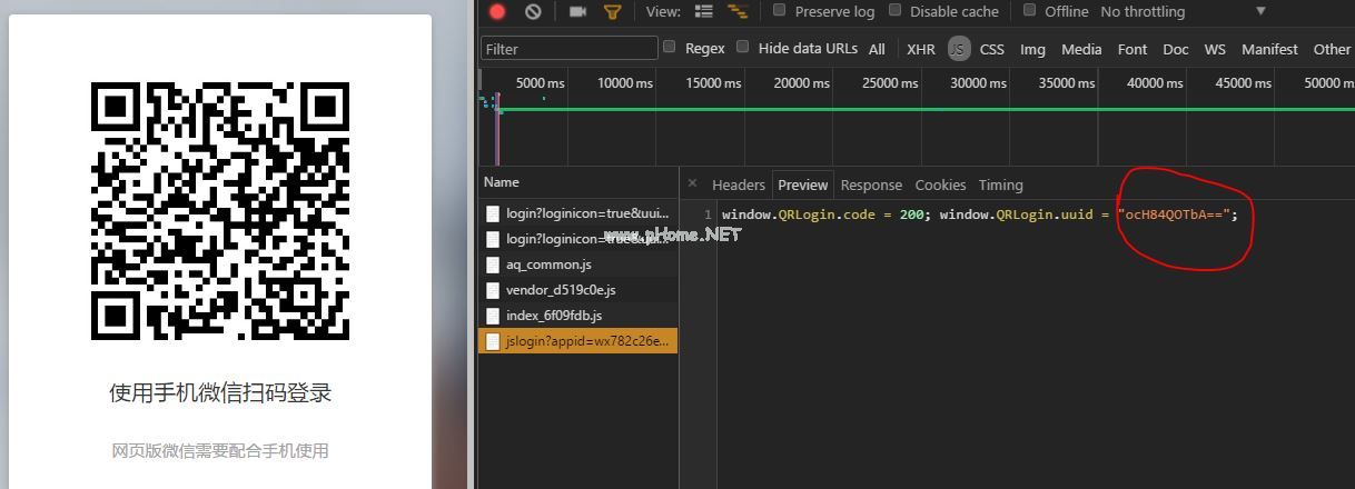 //获取uuid getUUID:函数(){ var e=t . delay();返回窗口QRLogin={},美元.ajax({ url: i.API_jsLogin,dataType: 'script' }).完成(函数(){ 200==window .二维码?e.resolve(窗口: e.reject(窗口QR LogOn。代码)}).fail(function() { e.reject() }),e.promise }浏览器轮询服务器,获取扫码状态