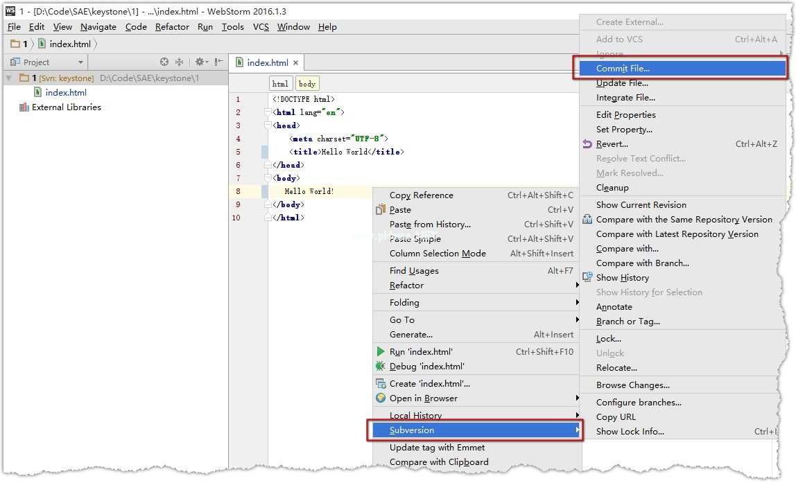 (1)如果你的项目是由SVN控制的,右键点击WebStorm项目的根目录,可以看到Subversion的右键菜单,选择对应的SVN函数操作来操作项目;
