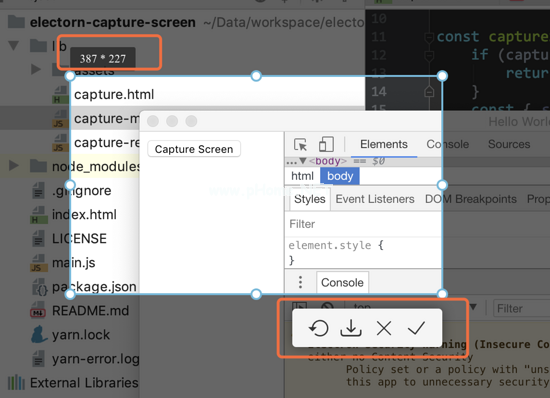 Electron提供了一个抓取屏幕的API,可以轻松获取每个屏幕(如果有外接显示器)和每个窗口的图像信息。