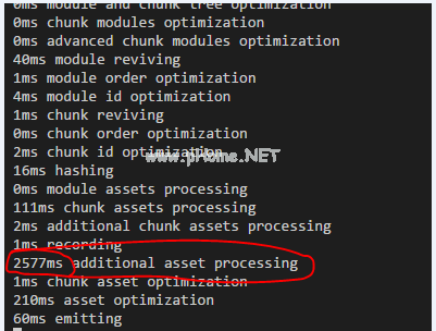 图中红色部分是耗时最长的地方。好吧,我找到了那个需要很长时间的地方。经过百度搜索,发现也有一个和我很相似的问题。他的理由是使用了uglifyJsPlugin插件。考虑到这一点,这个插件也用在我的项目的webpack配置中,所以我将这个插件移到生产环境中使用。修改后,我重新启动了项目。修改文件后,我检查了控制台,如下所示