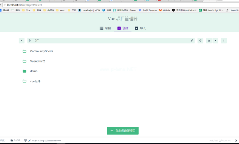 这里需要去自定义目录,方便以后的项目管理;执行该命令后,将打开localhost:8080窗口,这是vue项目的图形管理界面