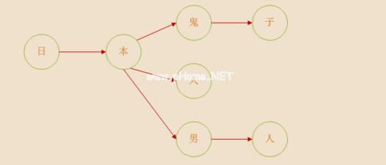 将敏感词转换成树形结构。比如敏感词['日本鬼子','日本人']太多,所以数据结构如下(图片参考参考文章)