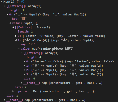 /*** @description*构造敏感词映射* @ private * @返回*/private makesensitive map(敏感词列表){//构造根节点const result=new Map();for(敏感单词列表的常量单词){ let map=resultfor(设I=0;I .字长;I) {//依次得到const char=word.charAt(i)这个词;//判断是否if (map。get (char))存在{//获取下一个节点映射=map . get(char);} else {//如果(map . get(' laster ')==true){ map . set(' laster ',false),则将当前节点设置为非结束节点;} const item=new Map();//新节点默认为结束节点item.set('laster ',true);map.set(char,item);map=map . get(char);} } }返回结果;}最终的地图结构如下