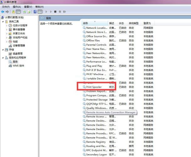 四:找到“后台打印程序”并重新启动此服务。