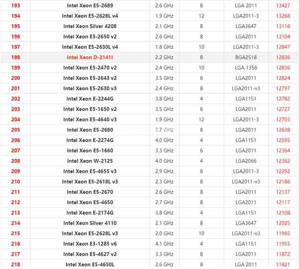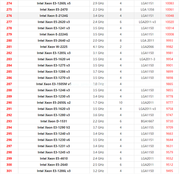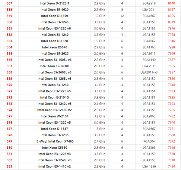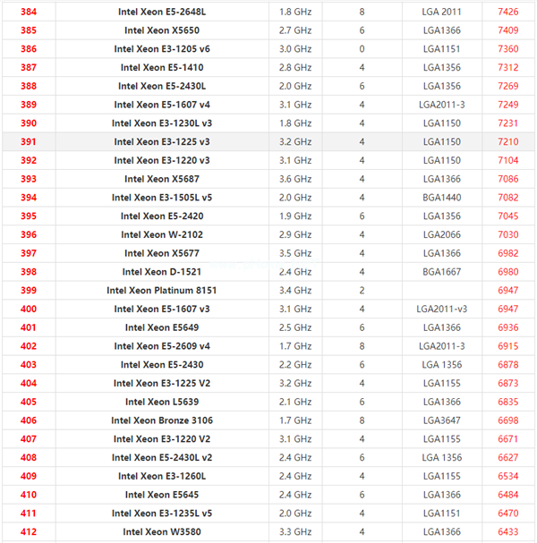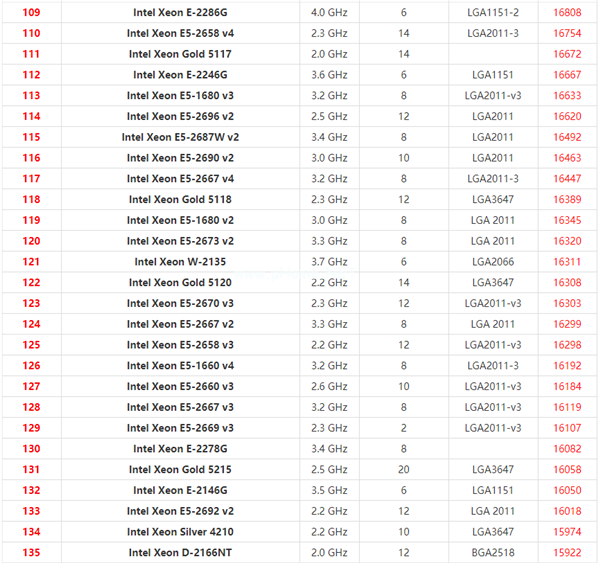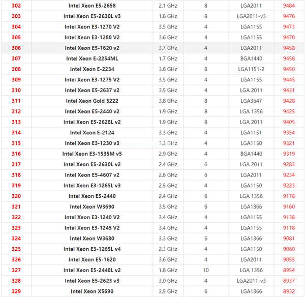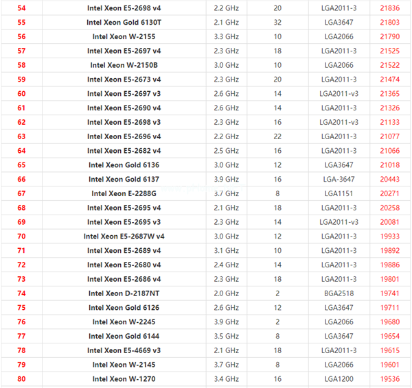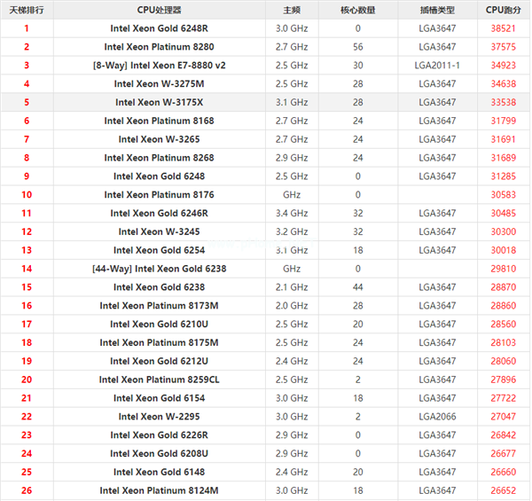 至强系列cpu天梯图2021