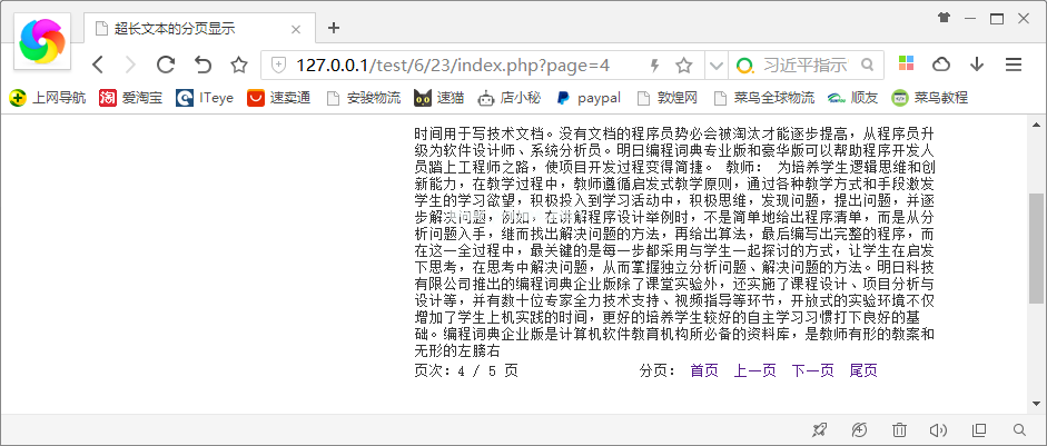 版权声明:PHP实现的超长文本分页显示功能示例是由宝哥软件园云端程序自动收集整理而来。如果本文侵犯了你的权益,请联系本站底部QQ或者邮箱删除。