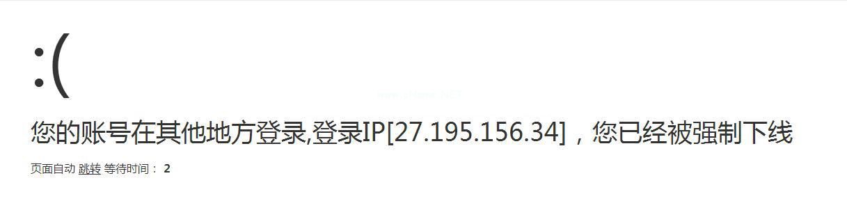 $ user=M(' user ')-其中(数组(' id '=$ _ SESSION[' uid ']))-find();$ session _ id=session _ id();if($user['session_id']!=$ session _ id){ session _ destroy();$ this-错误('您的帐户已在其他地方登录,您已被强制注销',U('登录');}当然也可以拿到异地登陆的IP,并给出:的提醒