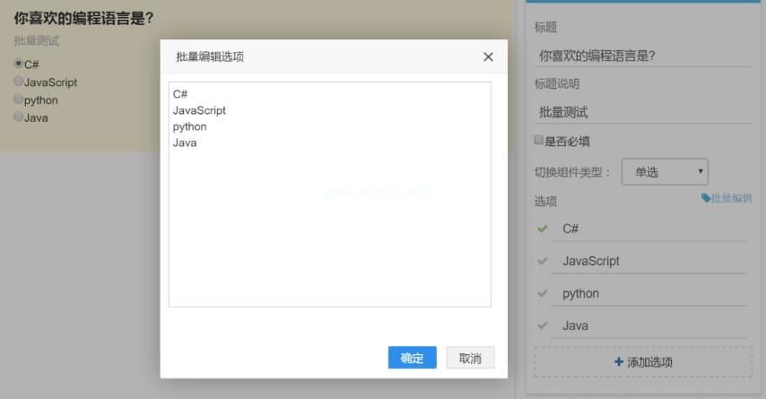 VM.options.push ({id : ' ',text :' new option ',checked : false });现在批量添加单选或复选框集合列表,这里使用textarea容器。