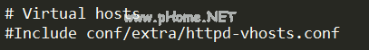 保存# include cf/extra/httpd-vhosts . conf的#符号。