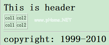 % @ page language=' Java ' import=' Java . util . * ' page encoding=' GB18030 ' % JSP : include page='/header . JSP '/JSP : include ejsp : include page='/content . JSP '/JSP : include JSP : include page='/footer . JSP '/JSP : include page显示结果: