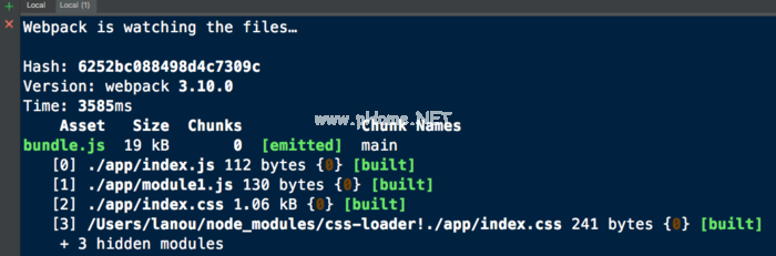 配置npm后,您可以在命令行中使用简单的npm start命令,而不是webpack命令