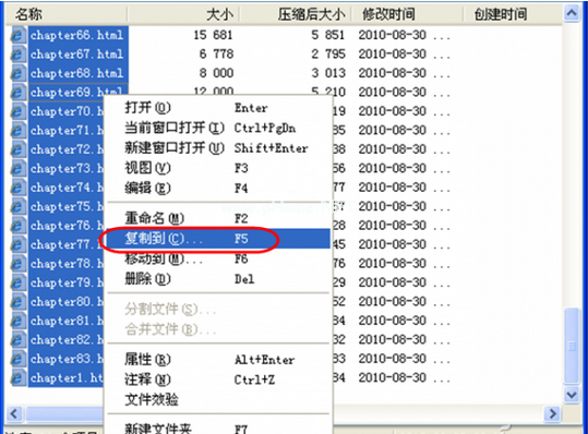 如果我们要提取上述《黄帝内经》中涉及的所有文字。epub”,我们可以在其他环境中编辑它们。这时,只需选择窗口中的所有HTML文件,然后选择“复制到…”通过右键菜单命令复制所有HTML文件,最后通过文本转换工具将所有HTML文件转换为TXT文件,然后进行编辑(如图2所示)。