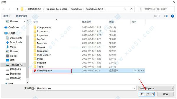 4.跳到文件路径,选择SketchUp.exe,然后单击打开