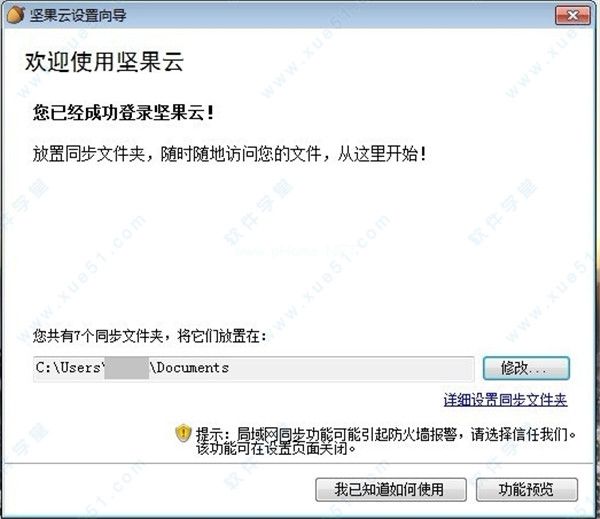 之后还需要设置一个坚果云的文件存储路径,以后坚果云会自动同步这个路径的文件。