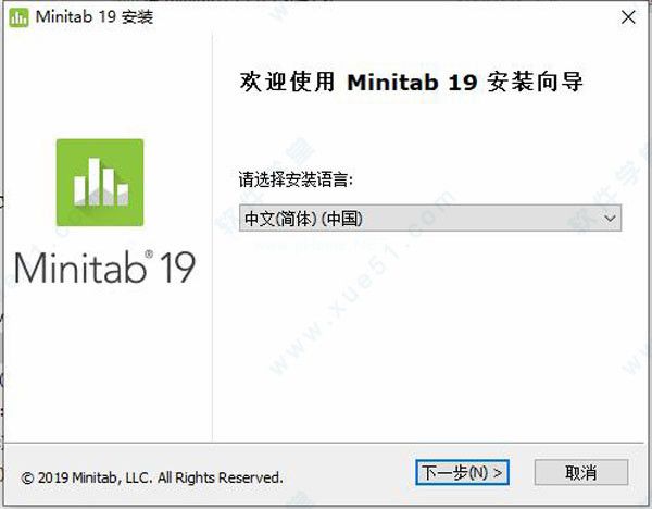 1.下载minitab2019破解版压缩包,解压得到软件安装文件和破解文件。双击安装文件开始安装,并选择软件语言。