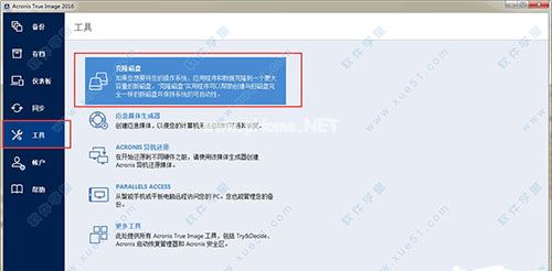 迁移系统教程:1。启动软件,可以在win7/win8.1/win10的系统界面下操作,选择工具,克隆磁盘;