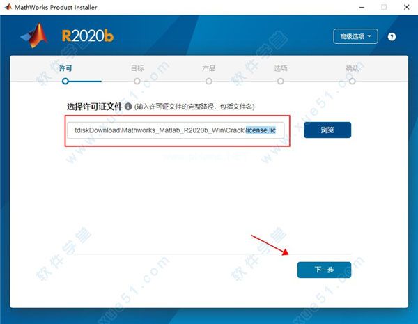 5.单击“浏览”并选择破解以破解文件夹中的许可证文件