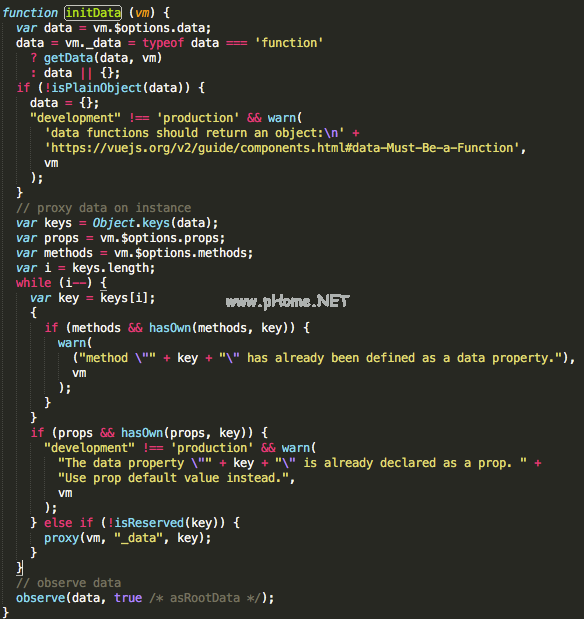 在Vue实例的数据选项中,Vue将遍历这个对象的所有属性,并使用Object.defineProperty将这些属性变成getter/setter。每个组件实例都有一个对应的观察器实例对象,在组件渲染过程中将属性记录为依赖项,然后当依赖项的设置器被调用时,它会通知观察器重新计算,以便更新其关联的组件。文档中有这么多描述,简单理解就是Vue绑定了vm。$data.a在data选项中以两个方向指向DOM中的vm.a,也就是说,其中一个发生变化,另一个也会发生变化。在Vue源代码中,它是通过defineReactive $ $ 1函数实现的: