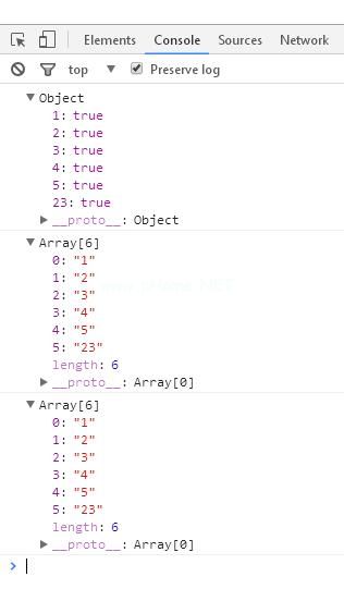 var arr=[1,2,3,4,5,23,4,2,4,3];//1.用对象替换数字程序集,将数组的元素作为对象的键,然后将对象函数返回给object(AC _ array){ varobj={ };//的私有对象(var I=0;iac _ array.lengthI){ obj[AC _ array[I]]=true;} console . log(obj);//Object {1: true,2: true,3: true,4: true,5: true,23: true } return obj}//2.获取对象的键作为数组的元素,然后返回数组功能键(AC _ obj){ var arr=[];for(AC _ obj中的var item){ if(AC _ obj . hasown property(item)){ arr . push(item);} } console . log(arr);//['1 ',' 2 ',' 3 ',' 4 ',' 5 ',' 23']返回arr}//集成函数uniq(AC _ array){返回键(to object(AC _ array));}//test var uniq _ array=uniq(arr);console . log(uniq _ array);//['1 ',' 2 ',' 3 ',' 4 ',' 5 ',' 23']代码测试结果: