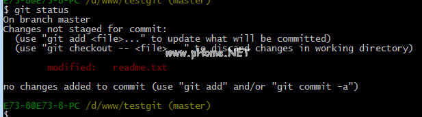 上面的命令告诉我们readme.txt文件已经修改,但是还没有提交修改。