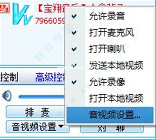 一、如何关联聊天室1中的虚拟摄像头。进入聊天室,点击聊天室右侧按钮,选择音视频设置,如下图: