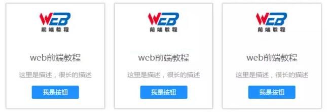 div id='app '!-第一张卡片-div class=' card ' img src=' http : log o . png ' alt=' h2web前端教程/h2p这里有一个描述,一个很长的描述/p button我是button /button /div!-第二张卡片-div class=' card ' img src=' http : log o . png ' alt=' h2web前端教程/h2p这里有一个描述,一个很长的描述/p button我是button /button /div!-第三张卡片-div class=' card ' img src=' http : log . png ' alt=' h2web前端教程/h2 p这里有一个描述,一个长描述/p button我是一个button /button /div /div如果我们把每张卡片都看作一个可重用的区域,那么它就可以打包成一个组件。