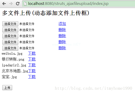 AjaxFileUpload结合Struts2实现多文件上传(动态添加文件上传框)