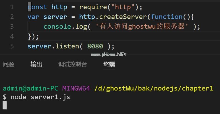const http=require(' http ');var server=http . create server(function(){ console . log('有人访问了ghostwu的服务器');});server . listen(8080);第1行:导入节点js的内置http模块
