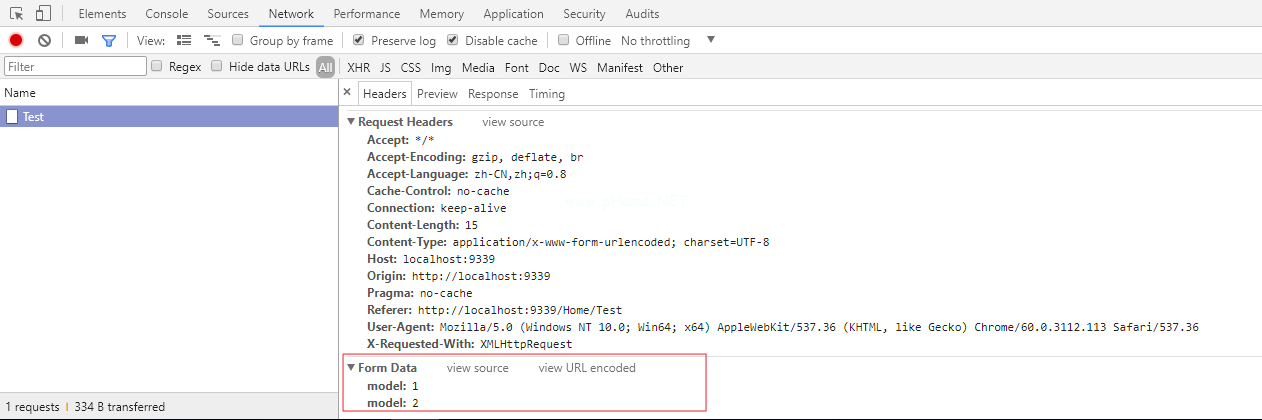 @ { Layout=null}!DOCTYPE htmlhtmlhead元名称=' viewport ' content=' width=device-width '/title TeSt/title/head dy div输入类型='button' id='btnAjax '值='发送请求//div script src=' http : ~/Scripts/jquery-1。10 .2 .量滴js '/script脚本类型=' text/JavaScript ' var tmp=' input type=' hidden ' name=' model ' value=' 1 '/input type=' hidden ' name=' model ' value=' 2 '/';$(function () { $('#btnAjax ')).单击(函数(){ $).Ajax({ Ul : ' @ Ul .操作(“测试”),类型: '开机自检',数据:美元.序列化(),成功:函数(JSON){控制台。日志(JSON);} });});});/脚本/正文/html调试模式监视参数,当点击按钮时,监视得到的参数如下
