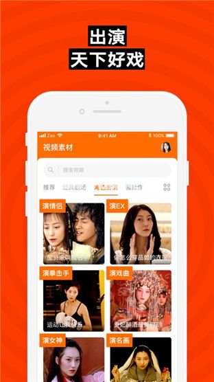 其中“拍视频”板块由推荐、合作、名场面、装扮、同台爱豆组成。还可以解锁演技、饰演角色、剧情、电影、演员等分类素材。对于视频中出现的多人角色,用户可以选择任意角色进行替换,替换后的照片可以立即拍摄,也可以从相册中选择。
