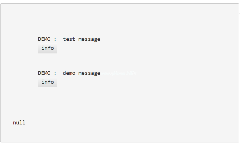 h1 DEmo/h1 pre ul Li * ngFOr=' let d of DataArr | async ' DEmo : { { d . msg } }按钮(单击)=' info()' info/button/Li/ul { { DataItem | async | JSON } } h1 * ngFOr=' let d of DataItem | async ' { d . msg } }/h1/pre 6 .运行效果