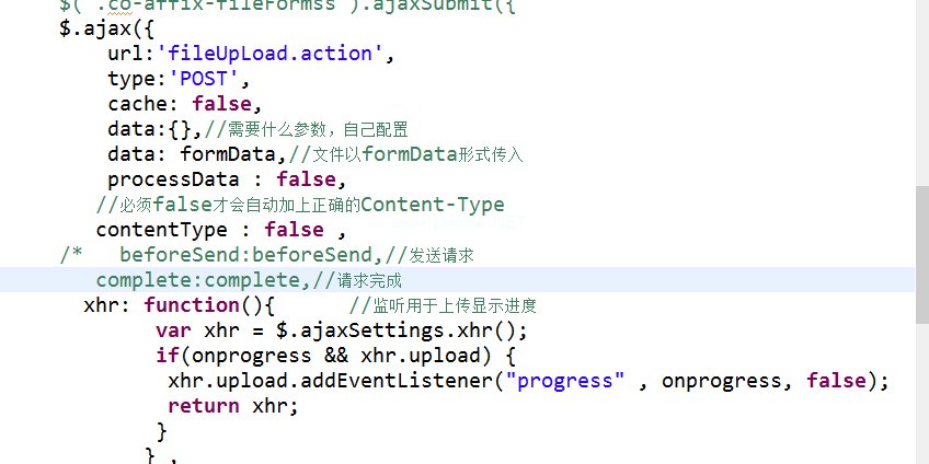 5.将xhr添加到ajax中,并设置上传监控事件。