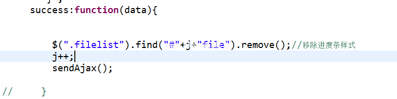 7.当ajax成功返回数据时,意味着文件已经发送到服务器。此时,移除前面的文件并执行下面的文件来发送ajax