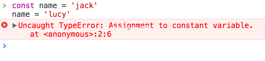 可以看到控制台报告了一个错误,所以一旦声明要复制基本类型常量,就不能再修改了